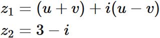 が $z_{1} = z_{2}$ であるとき、$u$ と $v$ を求めよ。