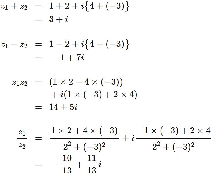の四則演算 (和・差・積・商) はそれぞれ次のように定義される。