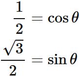 であるので、$\theta = \frac{\pi}{6}$ である。以上から、