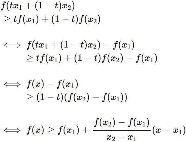 関数上のどんな二点を結ぶ直線よりも下側にある関数である。