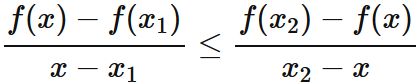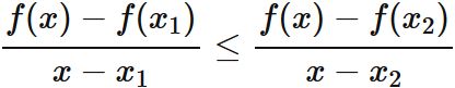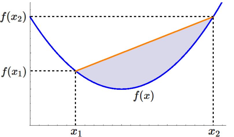 点 $(x_{2}, \hspace{1mm} f(x_{2}))$ を結ぶ直線上の値以上の値をとる関数である (下図)。