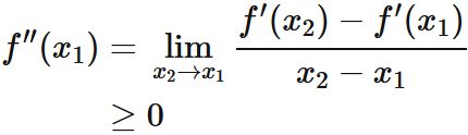 下に凸 $\hspace{1mm} \Longleftrightarrow \hspace{1mm}$ $\small f''(x) \geq 0$