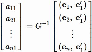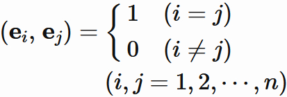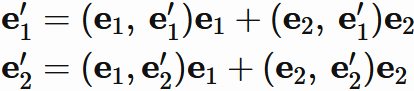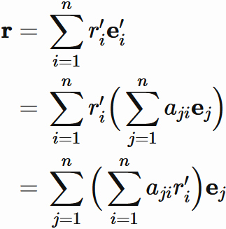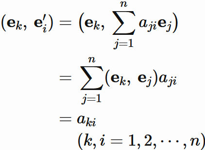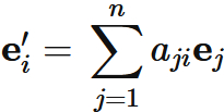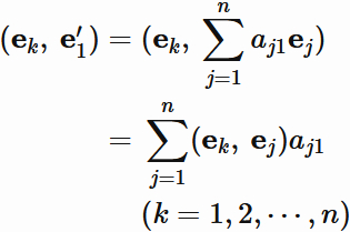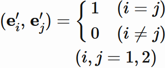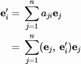 このように正規直交基底間の座標変換は $a_{ji}$ が内積から得られるので、