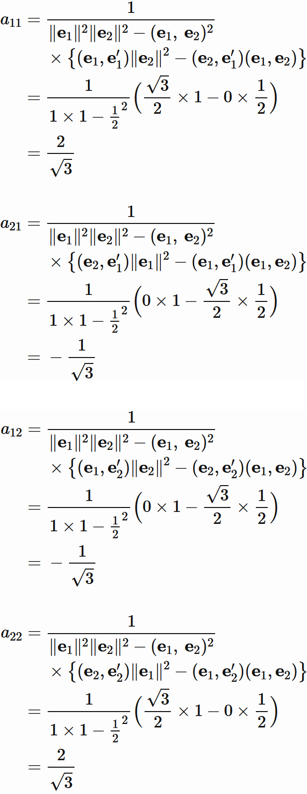 と置く。これらの係数 $a_{ij}$ を求めるために次の計算を行う。