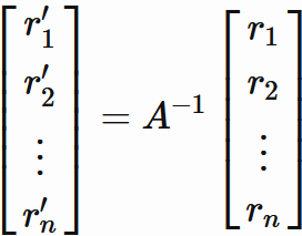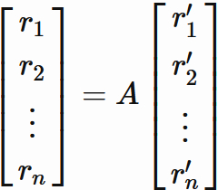 この式は $\{ r'_{i} \}$ と $\{ r_{i} \}$ の関係を表す。以下の補足1では $A$ の求め方を議論する。