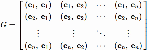 線形独立なベクトルから構成されるグラム行列の行列式は $0$ ではない。したがって、逆行列が存在する)。