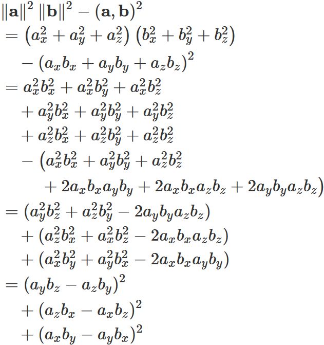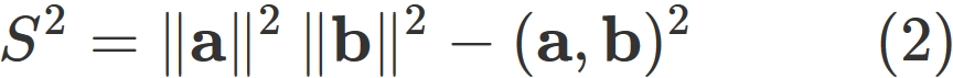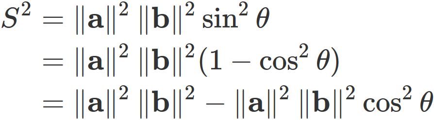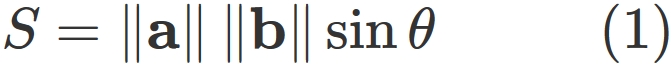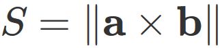 S &=& \| \mathbf{a} \times \mathbf{b} \|