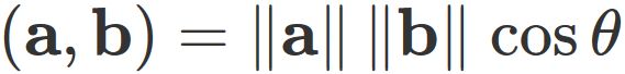 $\theta$ はベクトル $ \mathbf{a} $ と $ \mathbf{b} $ の成す角であり、