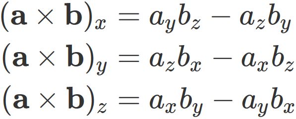 外積 $\mathbf{a} \times \mathbf{b}$ の3成分そのものであるので、