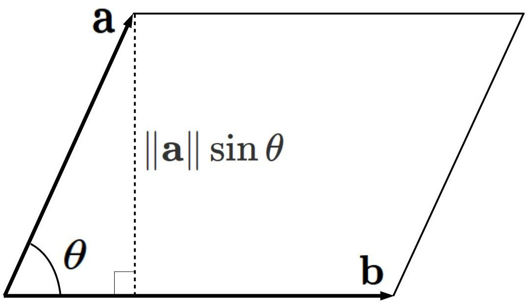 S = \| \mathbf{a} \| \hspace{1mm}\| \mathbf{b} \| \sin \theta