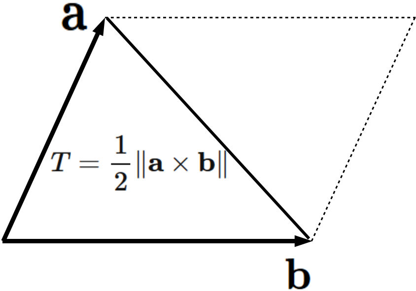 T = \frac{1}{2} \| \mathbf{a} \times \mathbf{b} \|