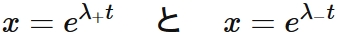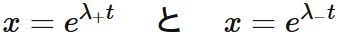 また、いずれの場合も十分に時間が経過すると $ (t \rightarrow +\infty) $、