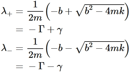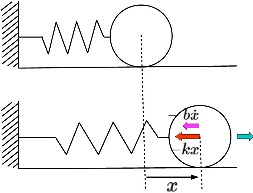 $m$ は質量、$k$ と $b$ は実定数であり、