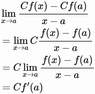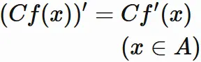 定数倍 $C f(x)$ もまたその区間で微分可能であり、
