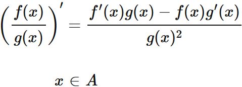 関数の商 $\frac{f(x)}{g(x)}$ もまたその区間で微分可能であり、