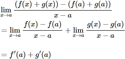 積 $f(x)+g(x)$ もまたその区間で微分可能であり、