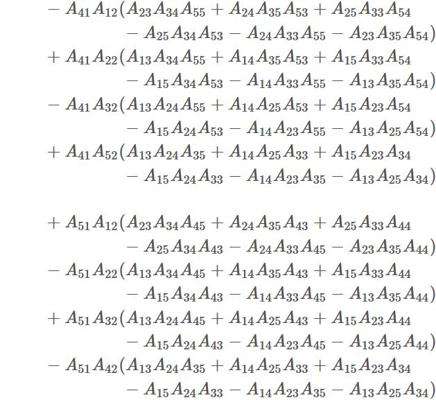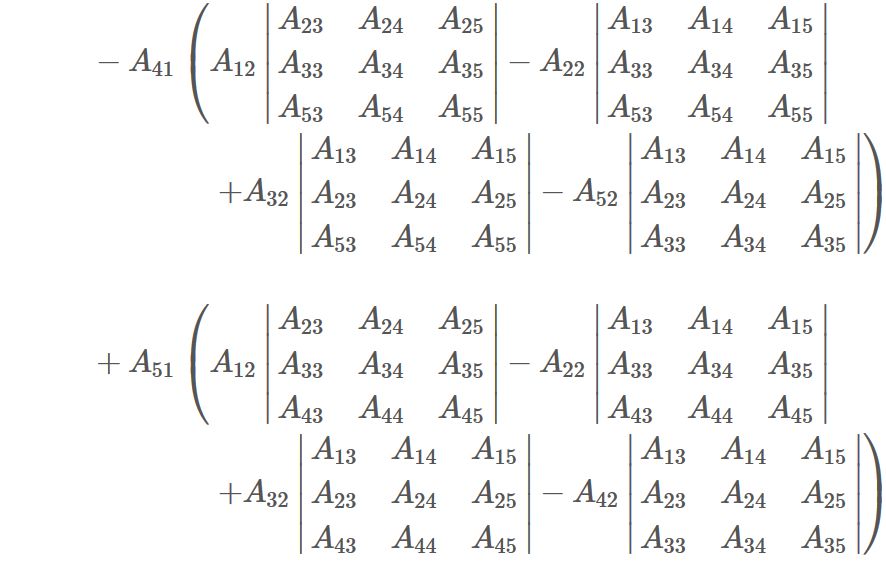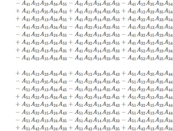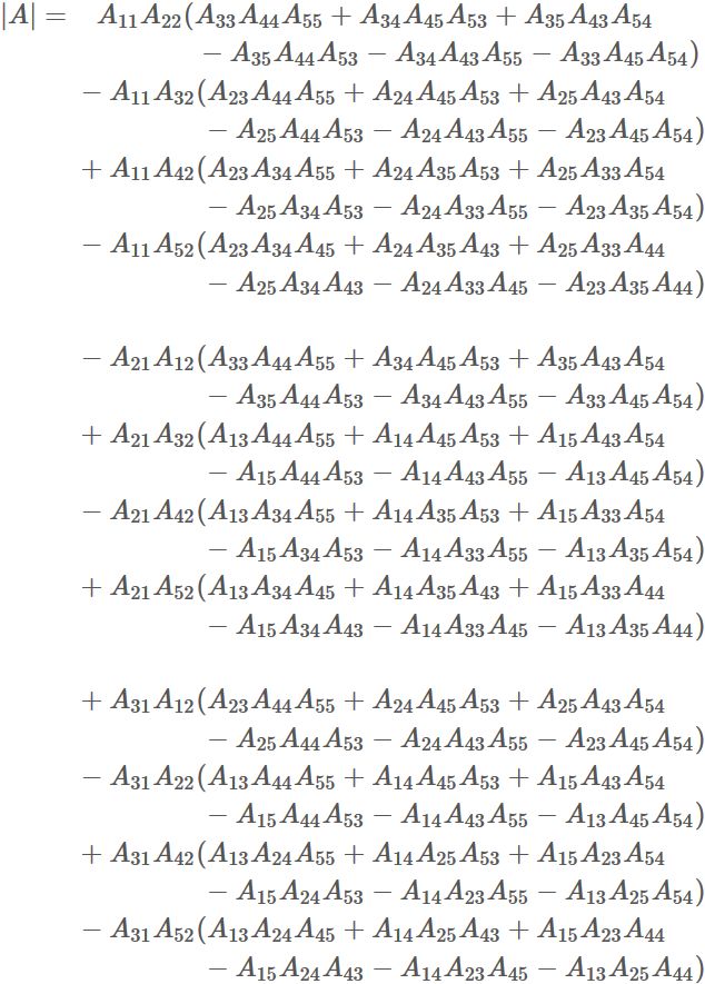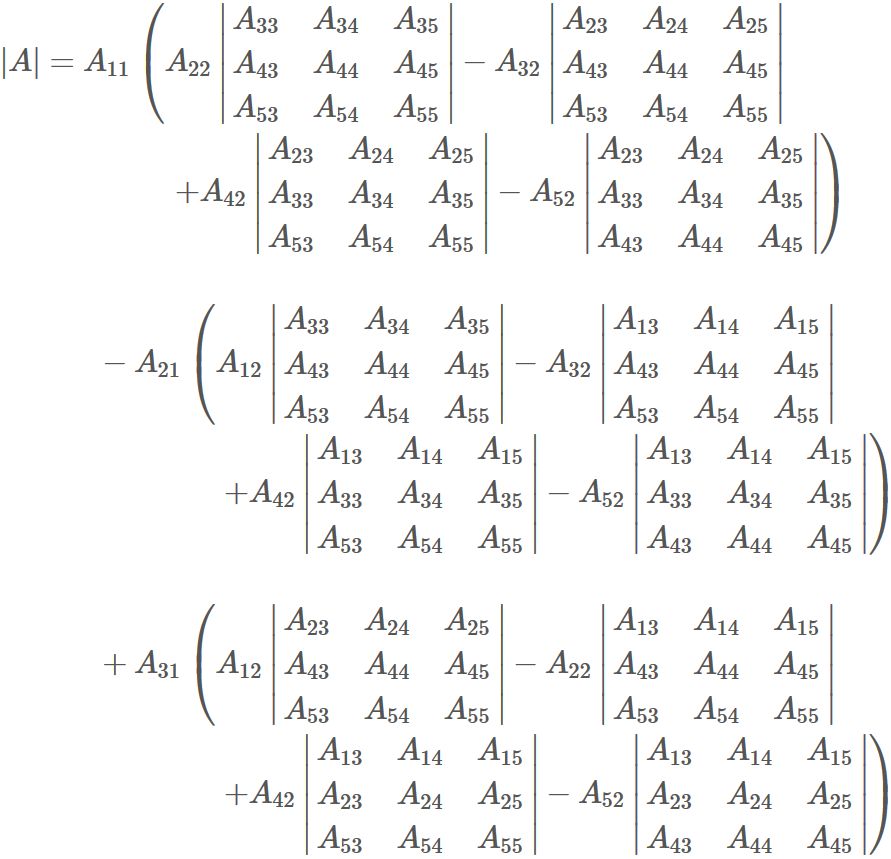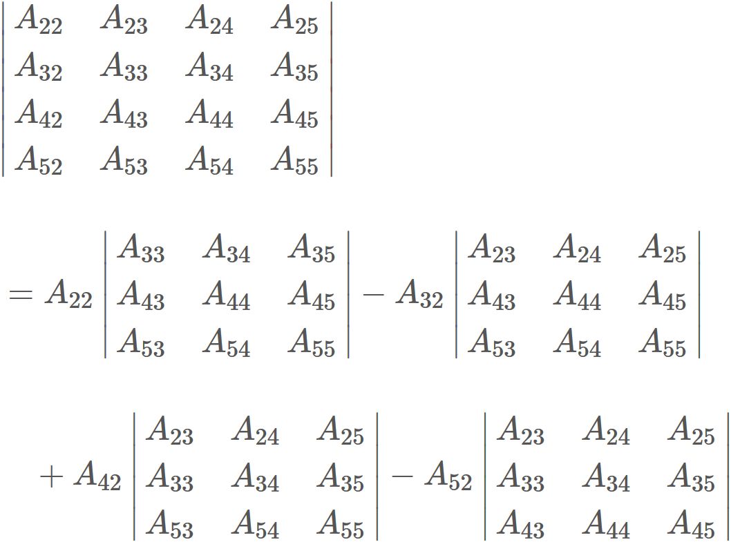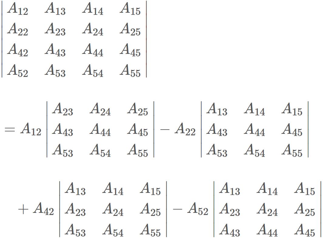 である。 それぞれの項に現れた4行4列の行列を1列について余因子展開すると、