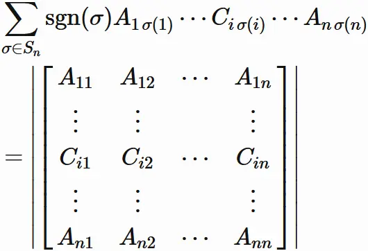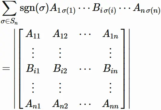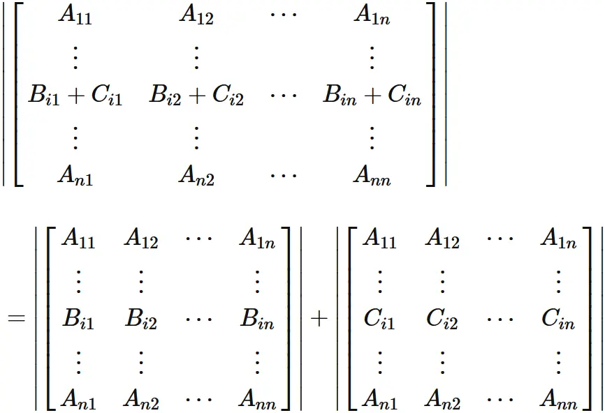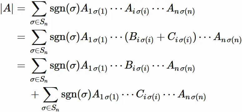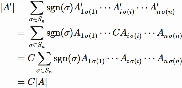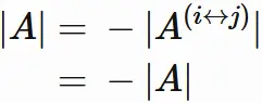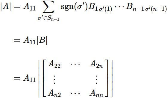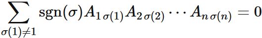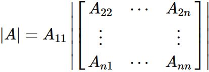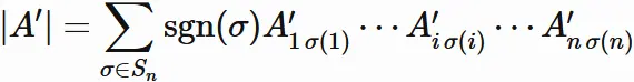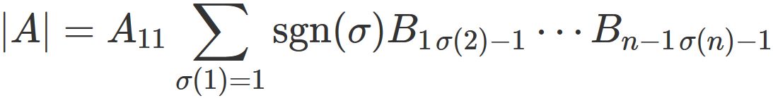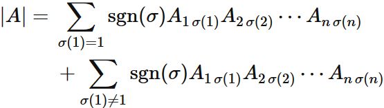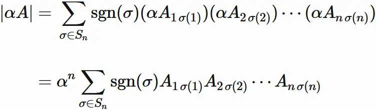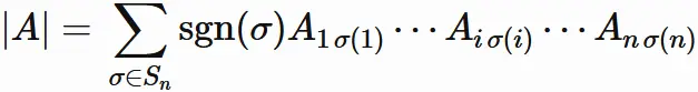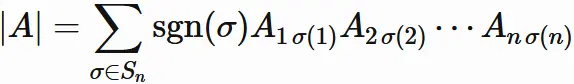 と表される場合、$A$ の行列式は、次のように表される。