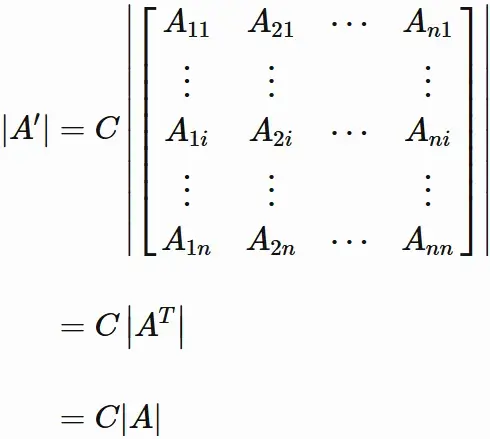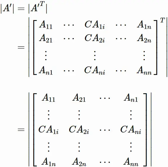 $A$ の転置行列 $A^{T}$ の行列式 $|A^{T}|$ は、