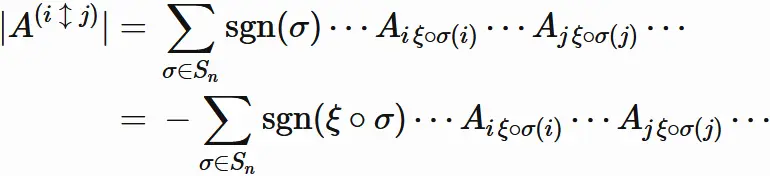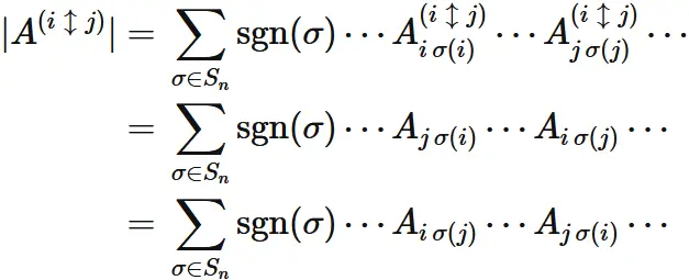 $| A^{(i \leftrightarrow j)} | = -|A|$ の証明