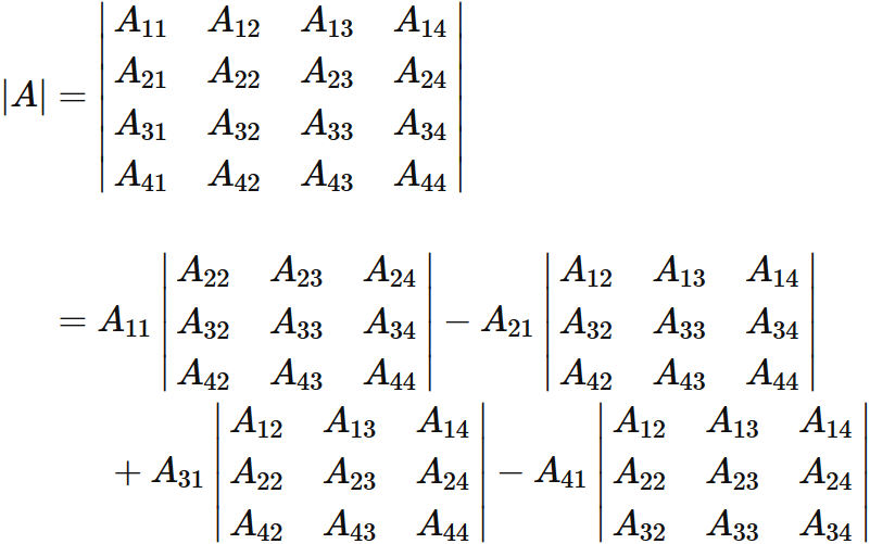 はこちらを参考)。 $A$ の行列式を $1$ 列について余因子展開すると、