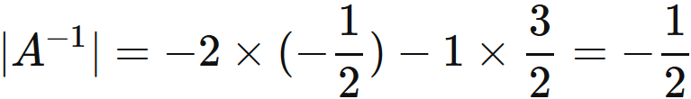 行列式 $|A^{-1}|$ は、もとの行列の行列式の逆数に等しい。すなわち、
