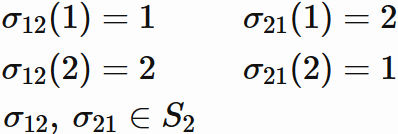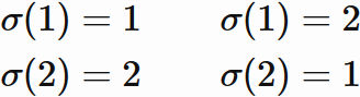 置換 $\sigma$ は数の集合 $\{1,2\}$ を同じ集合 $\{1,2\}$ にする $1$ 対 $1$ の写像であるので、