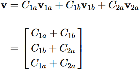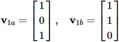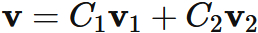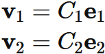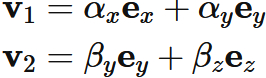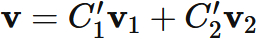 と表すと、$\mathbf{v}_{1}$ と $\mathbf{v}_{2}$ は、これらの基底の線形結合によって表される。すなわち、