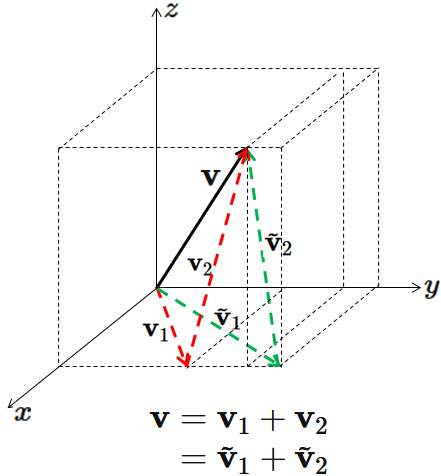 $V_{1}$ と $V_{2}$ のベクトルの和による表し方が一意ではないので、