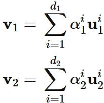と表される。ここで $\alpha_{1}^{i}$ と $\alpha_{2}^{i}$ は、線形結合の係数である。