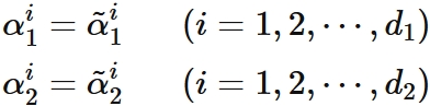 である。ここで $\tilde{\alpha}_{1}^{i}$ と $\tilde{\alpha}_{2}^{i}$ は、線形結合の係数である。
