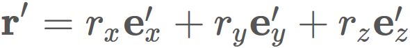 回転前の正規直交基底 $\{ \mathbf{e}_{x}', \mathbf{e}_{y}', \mathbf{e}_{z}' \}$ によって、