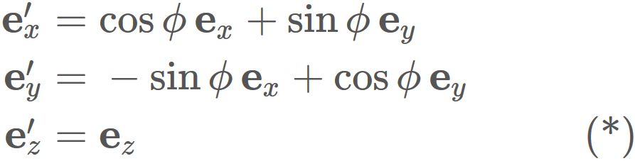 最初の正規直交基底 $\{ \mathbf{e}_{x}, \mathbf{e}_{y}, \mathbf{e}_{z} \}$ によって