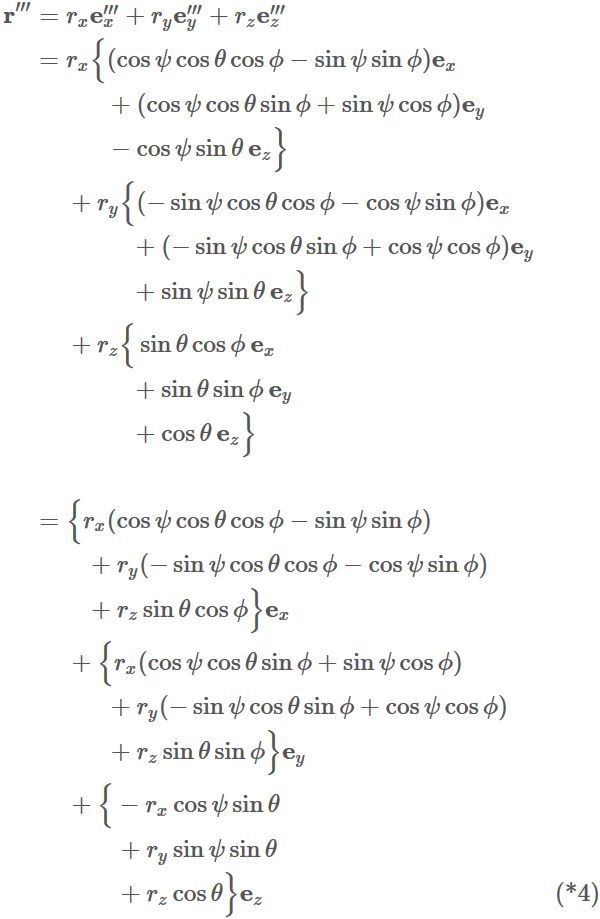 ここで3つの回転後の物体の位置 $\mathbf{r}'''$ を