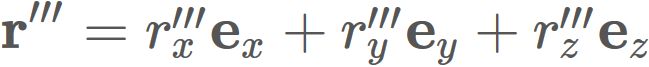 回転後における座標系 $C'''$ と 位置 $\mathbf{r}'''$ の間の相対位置関係は、