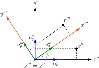 回転後の座標系 $C'''$ は座標系 $C''$ を $z$ 軸まわりに角度 $\psi$ だけ回転させて得られる座標系であり、
