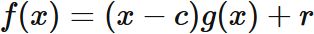 $n$ 次多項式 $f(x)$ を $x-c$ で割った商 を $g(x)$、余りを $r$ とする。