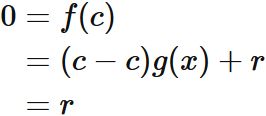 多項式 $f(x)$ を $(x-c)$ で割った余りは $f(c)$ である。