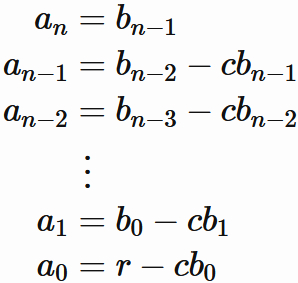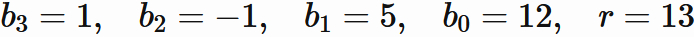 係数 $ b_{k} $ $(k=0,1,2,\cdots, n-1)$ と数 $r$ を