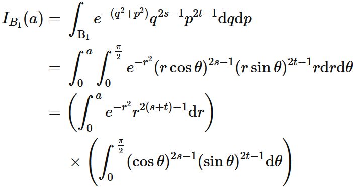 ここで積分 $I_{B_{1}}(a)$ の積分変数 $(q,p)$ を極座標 $(r, \theta)$ によって