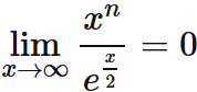$e^{-\frac{x}{2}}x^{n}$ の部分は、$x \rightarrow \infty$ の極限で $0$ に収束する。