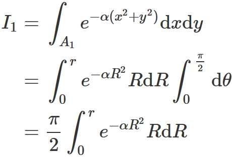左辺の積分 $I_{1}$ は、積分変数を極座標によって