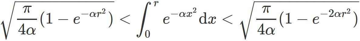 積分 $\int_{0}^{r} e^{-\alpha x^{2}}\mathrm{d}x$ は正である。ゆえに