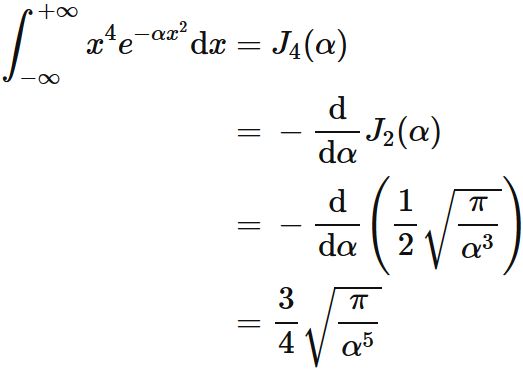 被積分関数が $x^4 e^{-\alpha x^2}$ の場合のガウス積分は