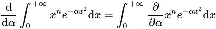 非積分関数 $x^{n} e^{-\alpha x^2}$ とその $\alpha$ に関する偏微分