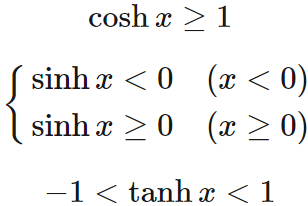 - $\sinh x$ と $\tanh x$ は奇関数である。