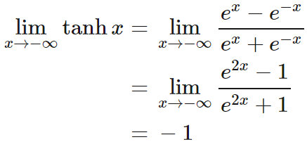 であることから、$\tanh x$ が $-1$ 以下にならないことが分かる。