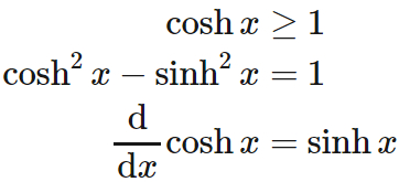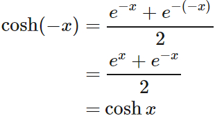 - $\cosh x$ は偶関数である。