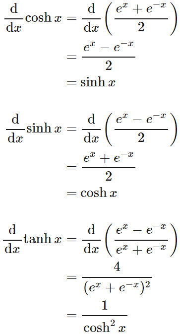 双曲線関数の微分はそれぞれ