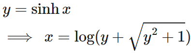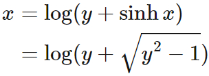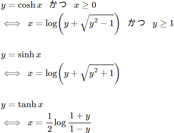 各双曲線関数には次のような逆関数がある。
